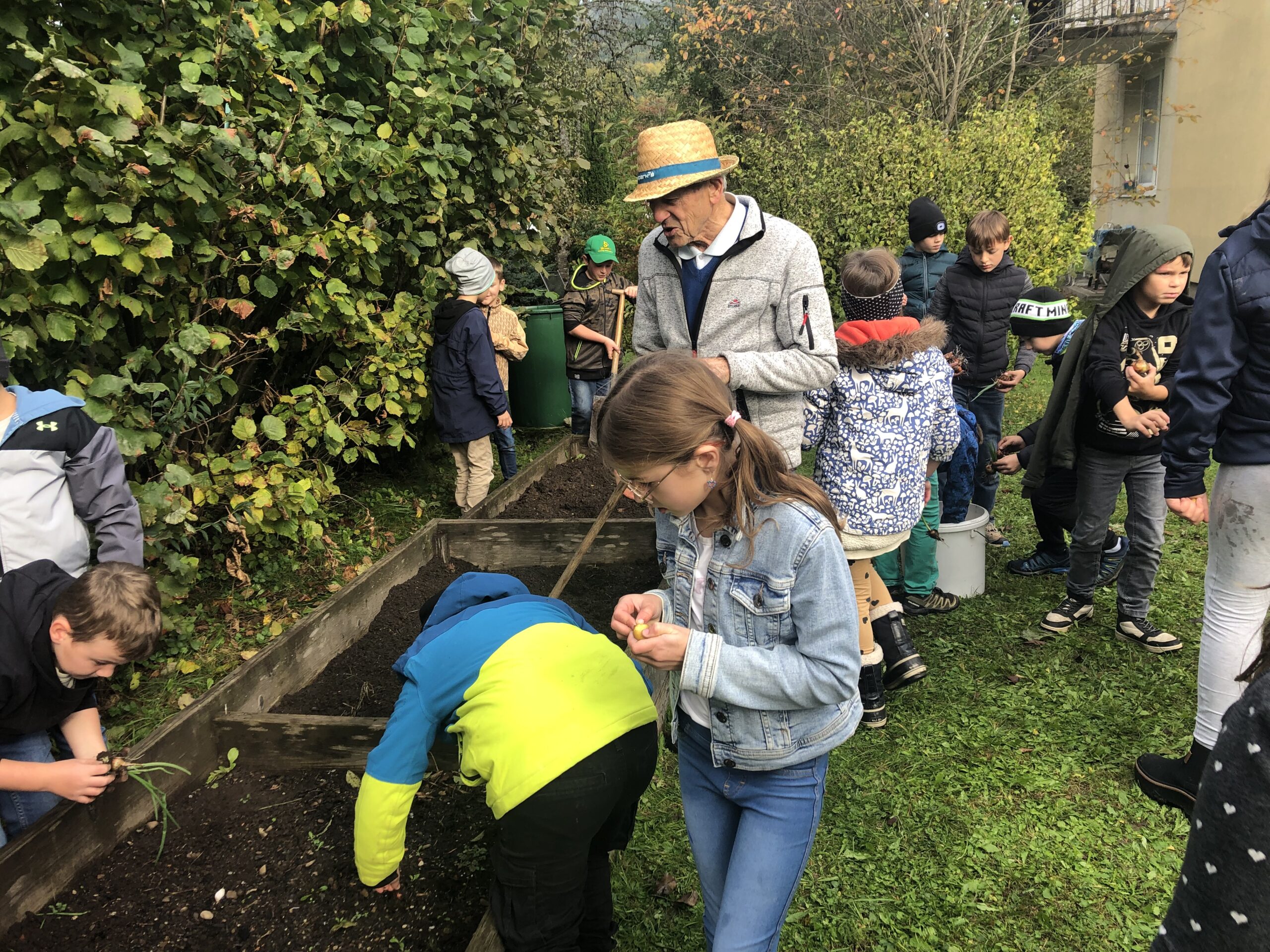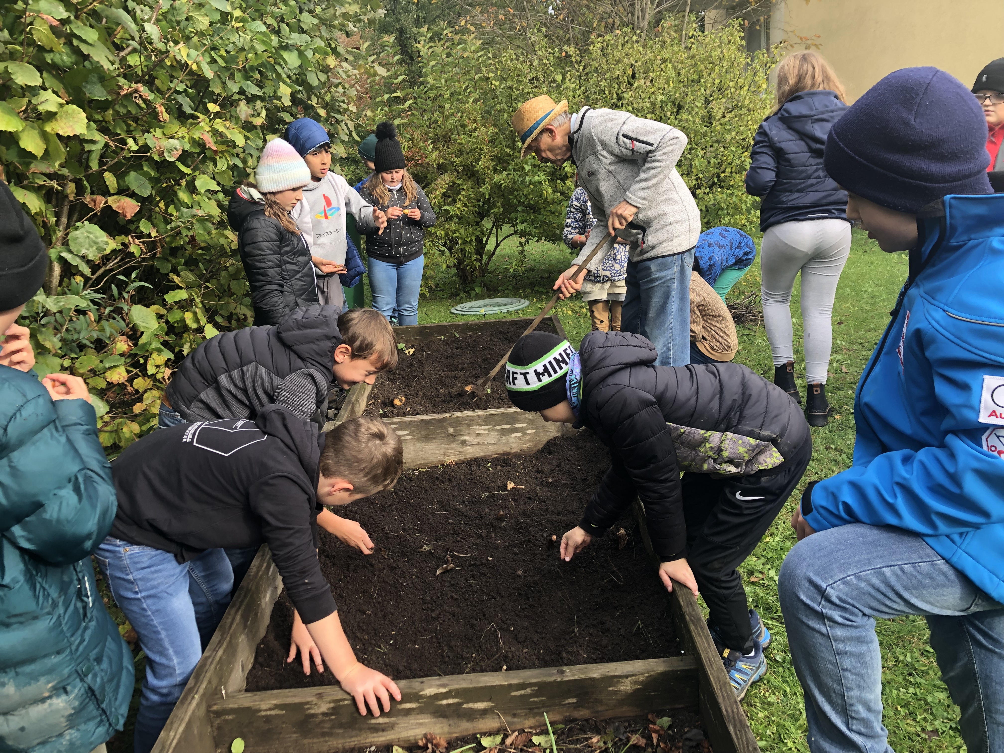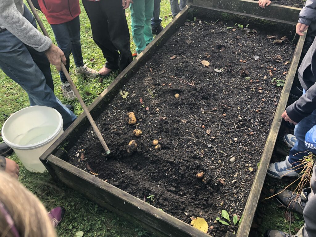 Im Frühjahr wurden im Schulgarten unter der fachkundigen Anleitung von Herrn Hackl Kartoffeln und Zwiebeln gepflanzt – mit viel Begeisterung und noch mehr Erde an den Händen. Nun, einige Monate später, war es endlich so weit: Die Ernte stand an!