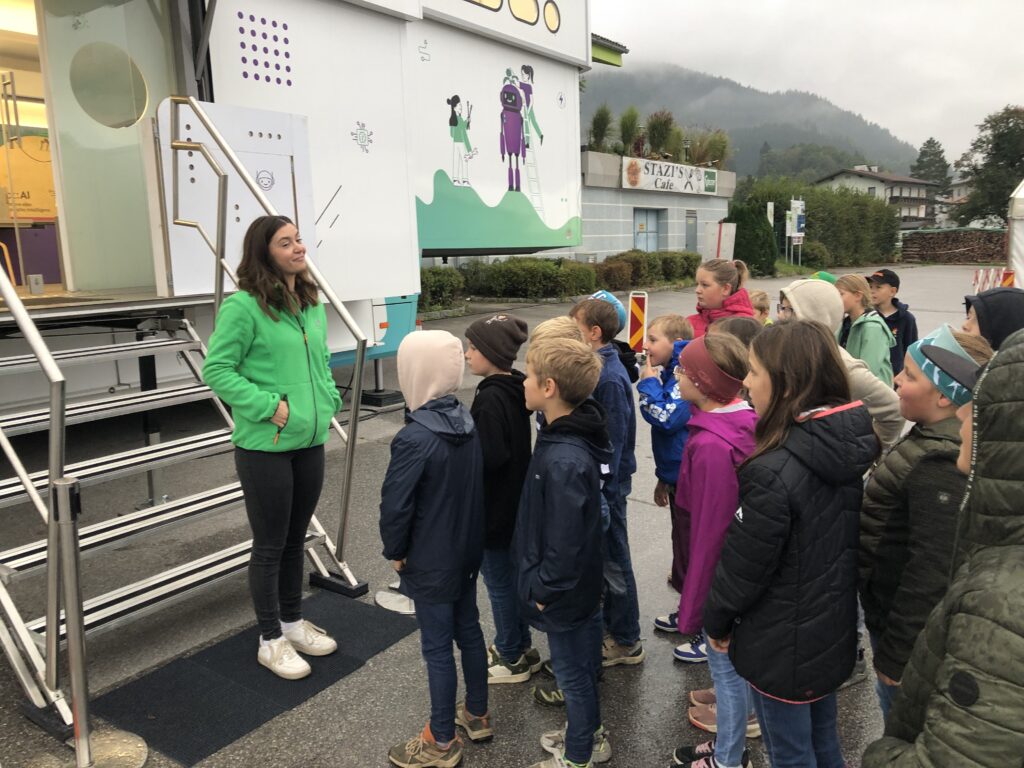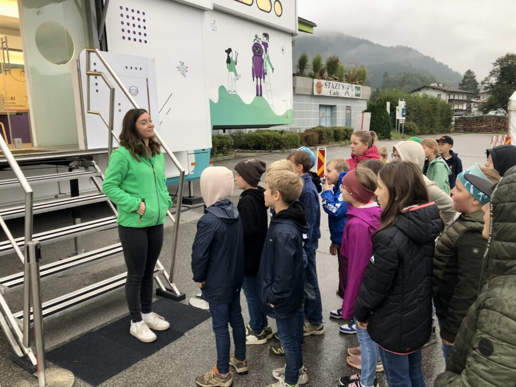 Am Mittwoch, den 24. September 2025, besuchten die Kinder der 3. und 4. Klasse der Volksschule Spital am Pyhrn den Missimo-Truck am Hallenbadparkplatz. Dieser riesige, zweistöckige Erlebnis-Truck brachte spannende Technik direkt vor die Haustüre.