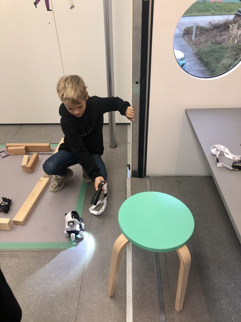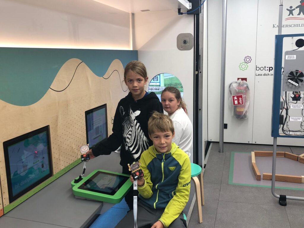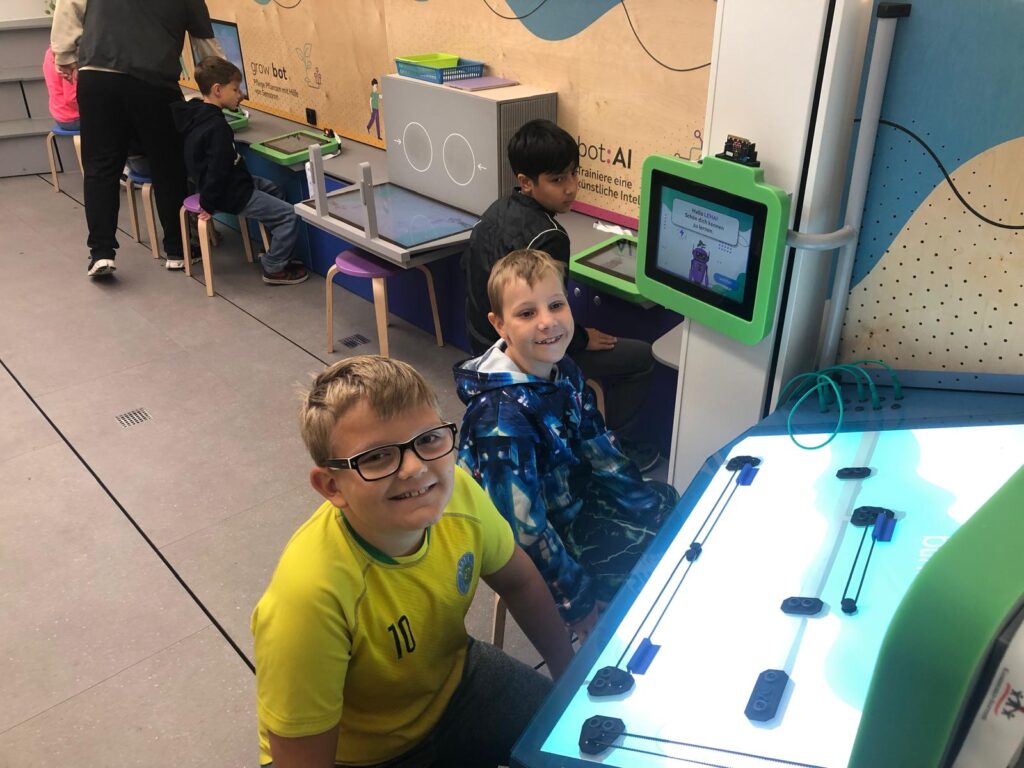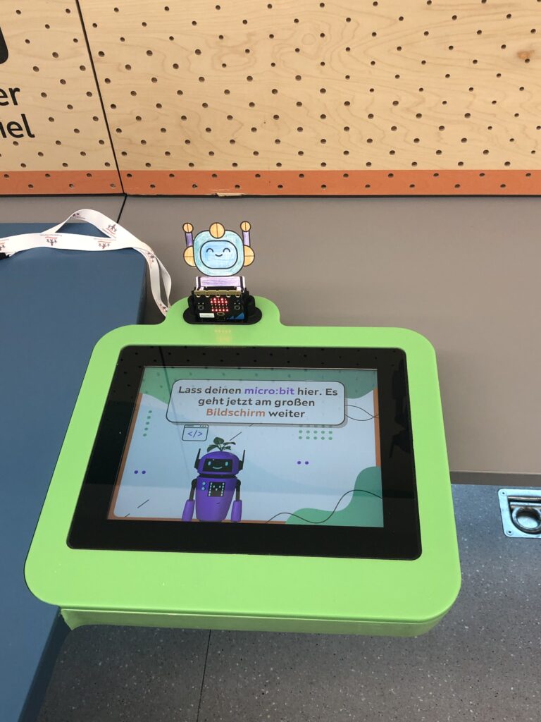 Die Kinder durften Roboter programmieren, die sogar gehen und ihre Farbe ändern konnten. Besonders lustig war ein Fotoautomat und Fußballspiele auf dem Micro:bit. Im ersten Stock konnten die Schüler*innen moderne Videospiele ausprobieren und künstliche Intelligenz kennenlernen: Vor einer Kamera wurde „Schere, Stein, Papier“ gespielt – die KI erkannte sofort, wer gewonnen hatte.