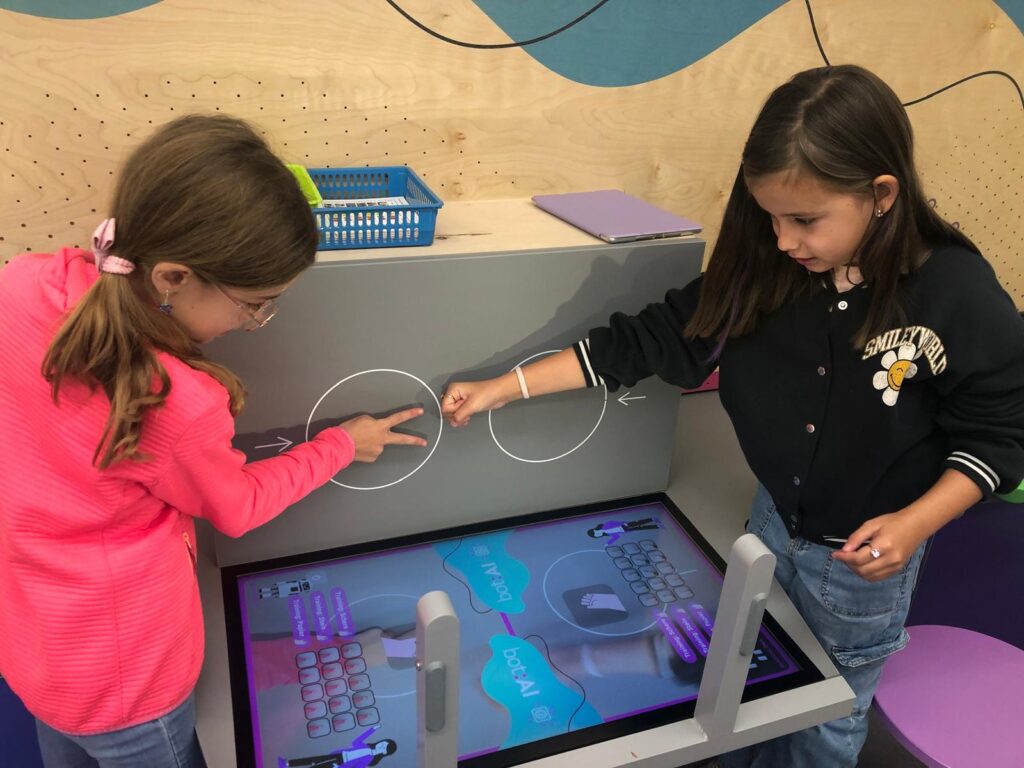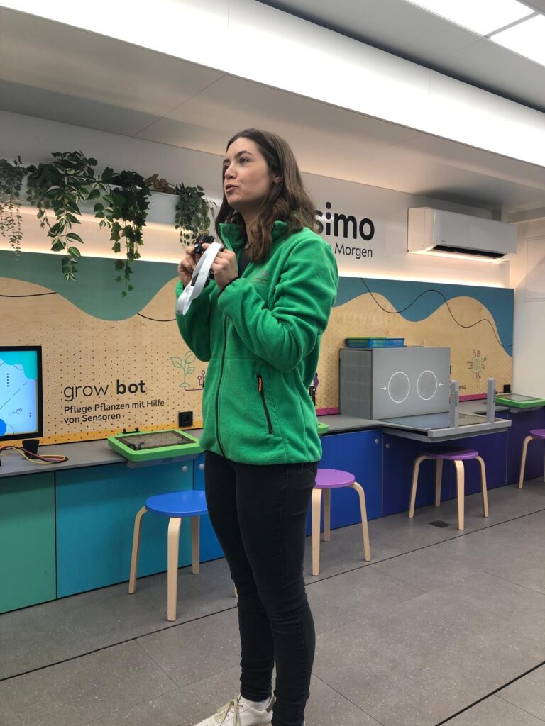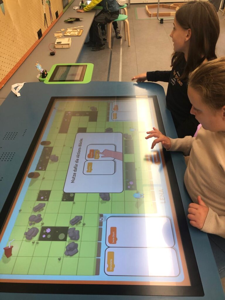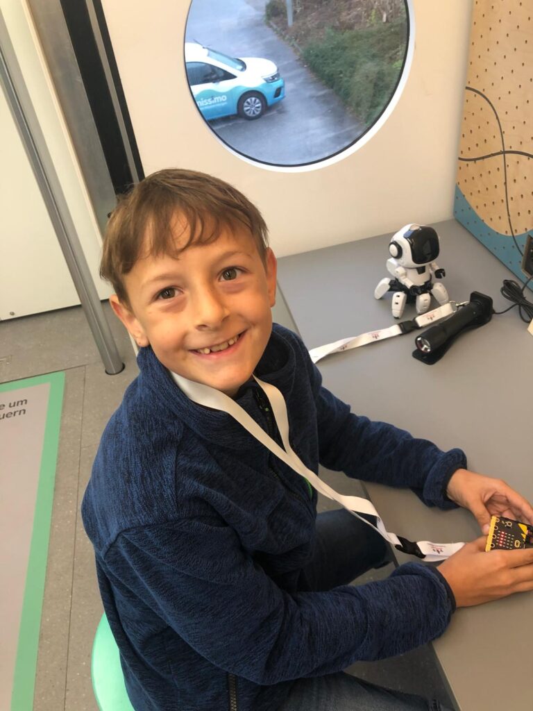 Die Kinder durften Roboter programmieren, die sogar gehen und ihre Farbe ändern konnten. Besonders lustig war ein Fotoautomat und Fußballspiele auf dem Micro:bit. Im ersten Stock konnten die Schüler*innen moderne Videospiele ausprobieren und künstliche Intelligenz kennenlernen: Vor einer Kamera wurde „Schere, Stein, Papier“ gespielt – die KI erkannte sofort, wer gewonnen hatte.