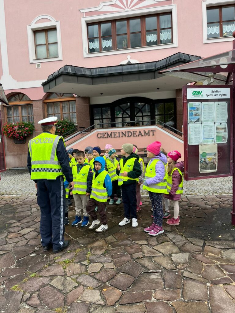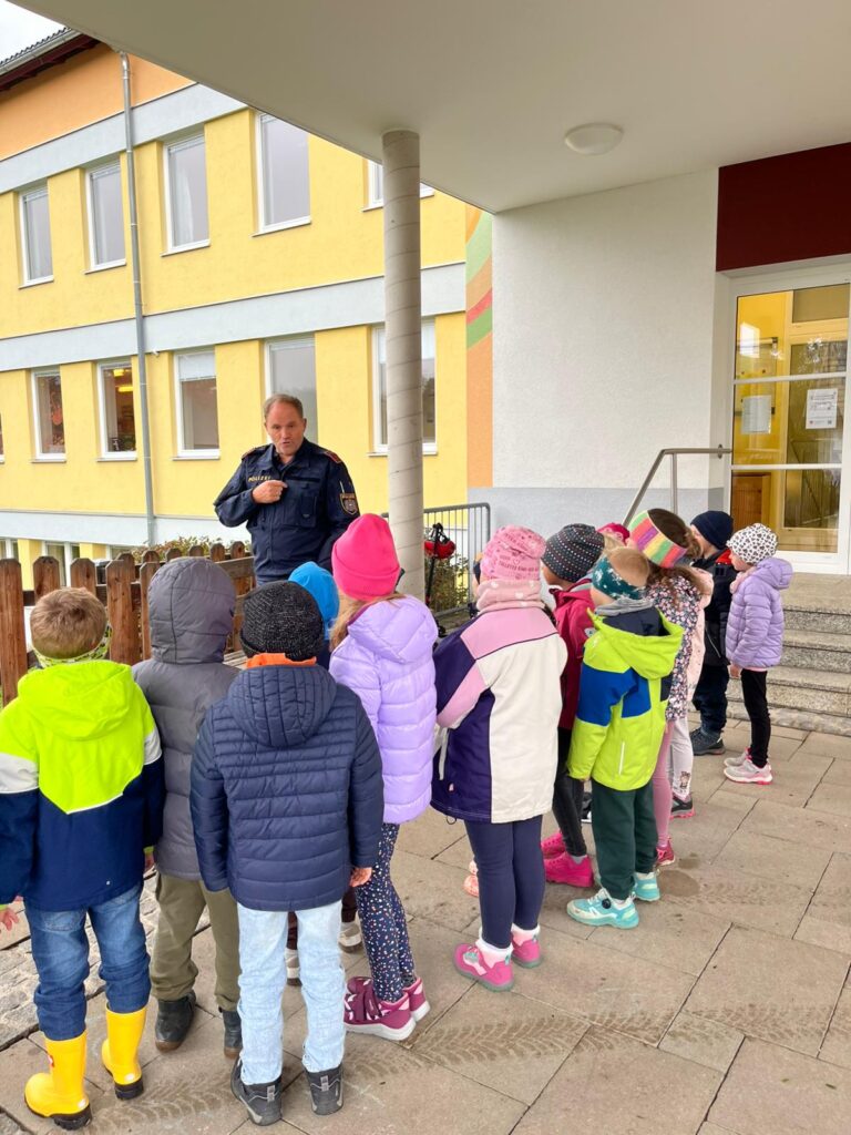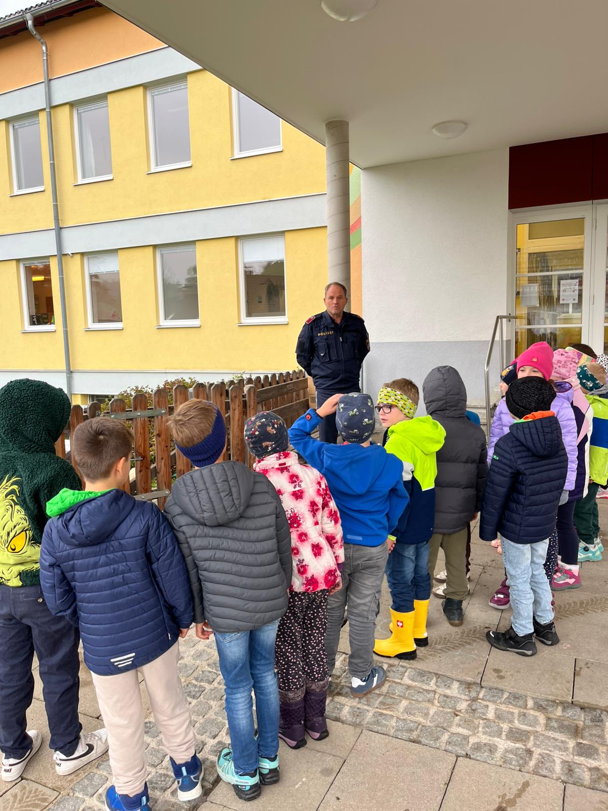 Am Mittwoch, den 8. Oktober 2025, bekam die 1. Klasse der Volksschule Spital/Pyhrn Besuch vom Verkehrspolizisten Daniel Ofner.